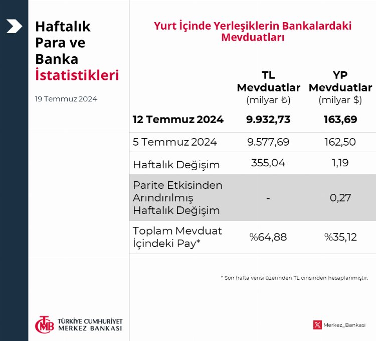 ANKARA (İGFA) – Merkez Bankası haftalık para ve banka istatistiklerini açıkladı.